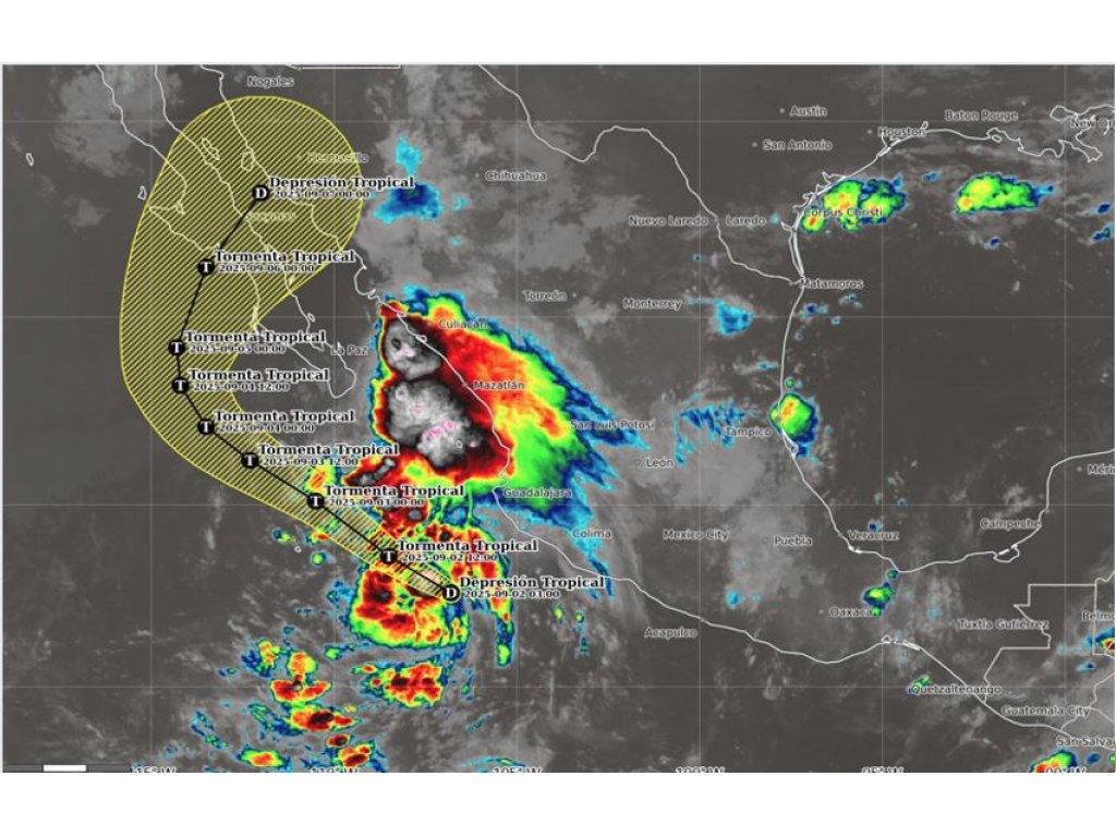 Se pronostican lluvias puntuales intensas (75 a 150 mm) en Baja California Sur (sur), Sinaloa y Nayarit y lluvias puntuales muy fuertes (50 a 75 mm) en Jalisco, Colima y Michoacán. Todas las lluvias pronosticadas podrían estar acompañadas con descargas eléctricas. Las lluvias puntuales muy fuertes reducirán la visibilidad en tramos carreteros y zonas urbanas, asimismo, podrían originar encharcamientos, deslaves, inundaciones y el incremento en los niveles de ríos y arroyos.